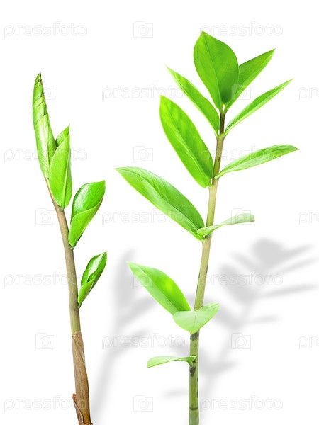 Стебли с зелеными листочками на белом фоне