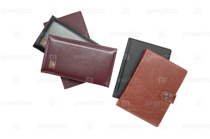 Портмоне и записные книжки на белом фоне