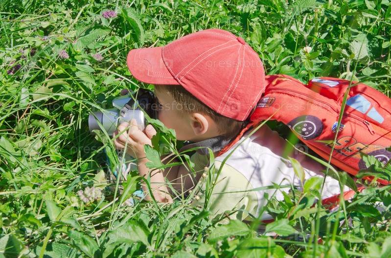 Маленький фотограф в траве