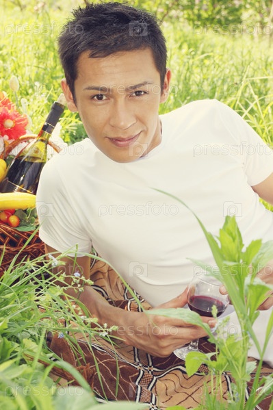 Красивый мужчина держит бокал вина
