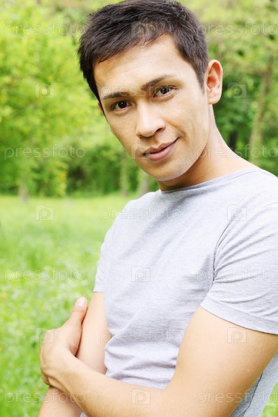 Портрет улыбающегося молодого человека на природе