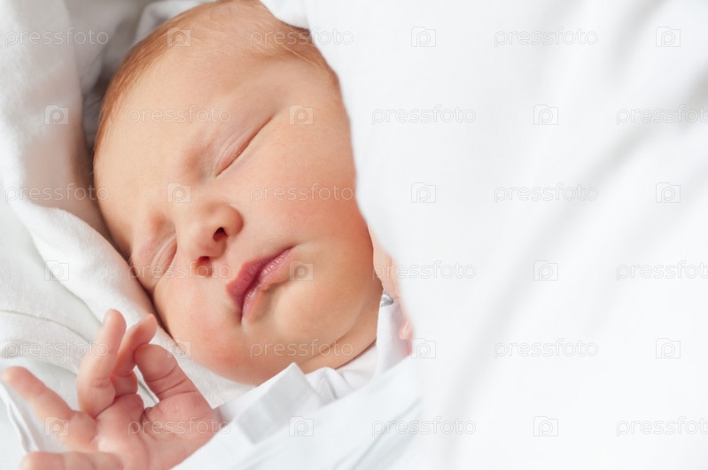 Портрет новорожденного ребенка в кроватке