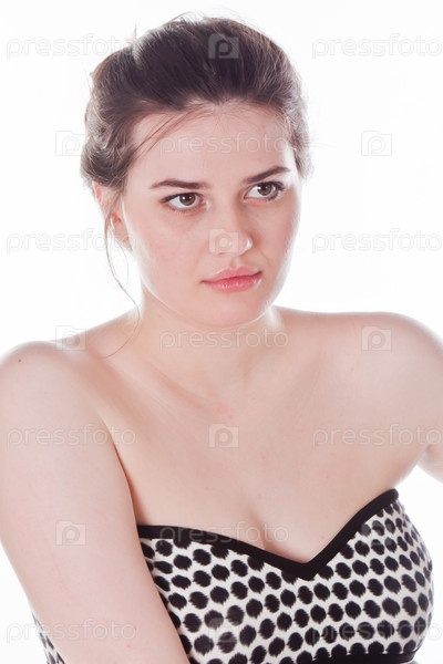 Молодая и красивая женщина в элегантном платье изолирована на белом фоне