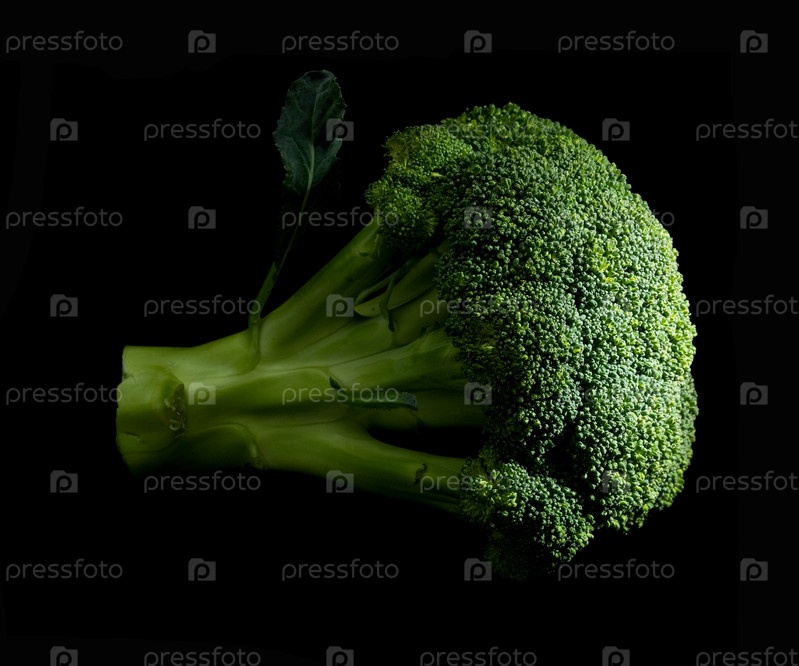 Свежая ярко-зеленая брокколи на черном фоне