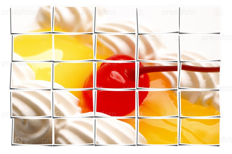 Кусок торта с лимонным желе с вишней на белом фоне