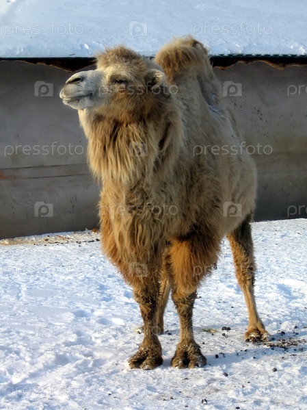 Верблюд в зоопарке зимой
