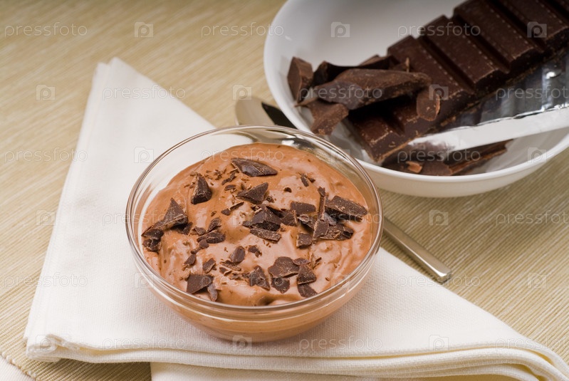 Свежий домашний шоколадный мусс из горького шоколада крупным планом