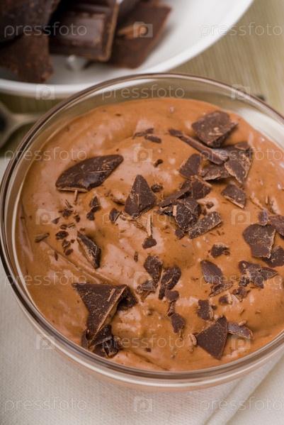 Свежий домашний шоколадный мусс из горького шоколада крупным планом