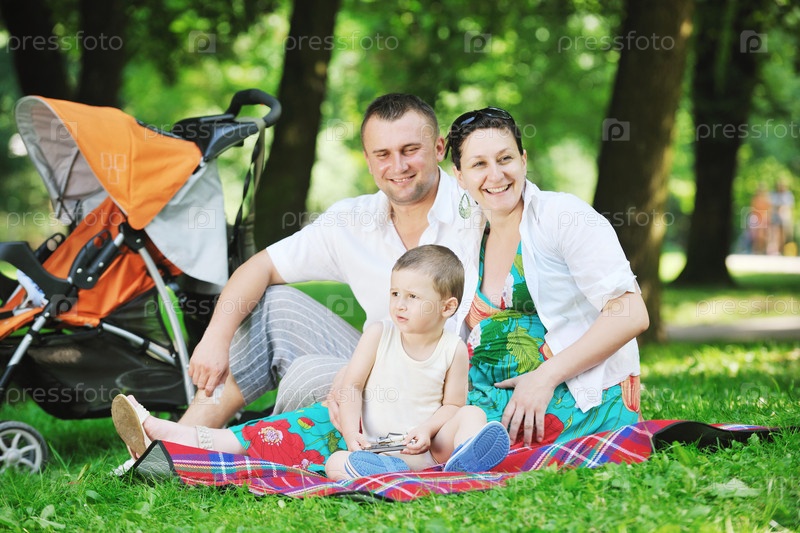 Молодая семья в парке