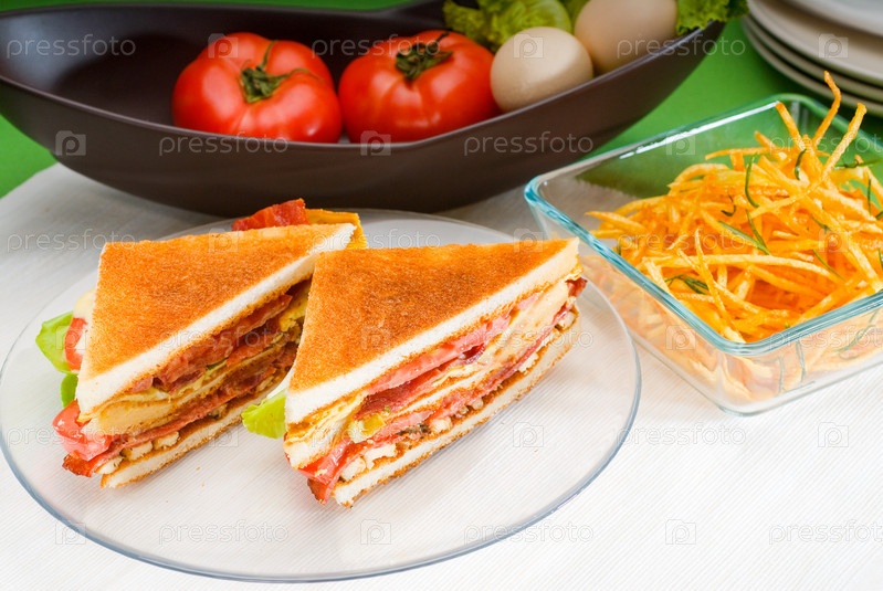 Классический клубный сэндвич на блюде из прозрачного стекла