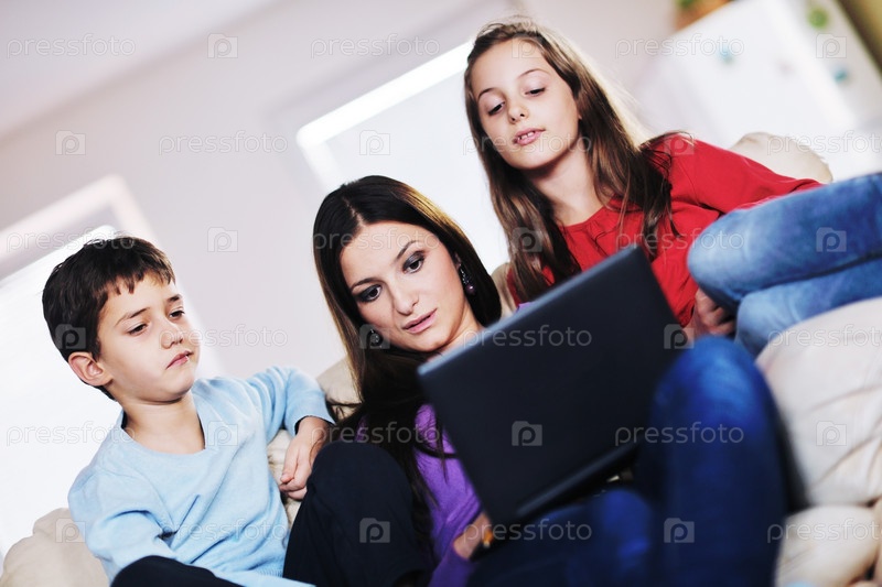 Счастливая молодая семья играет в гстиной