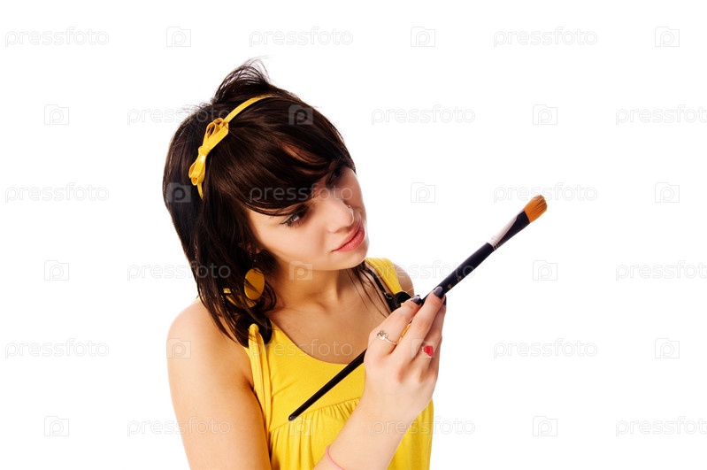 Девушка с кисточкой на белом фоне