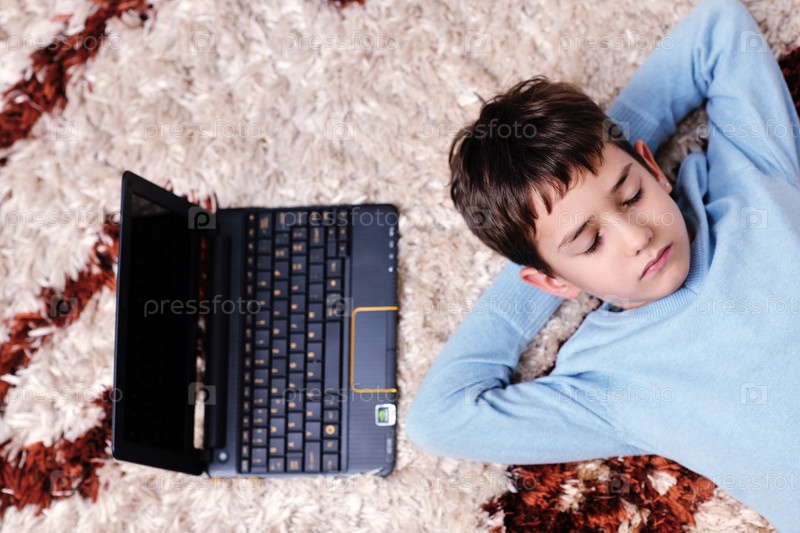 Портрет мальчика с ноутбуком дома