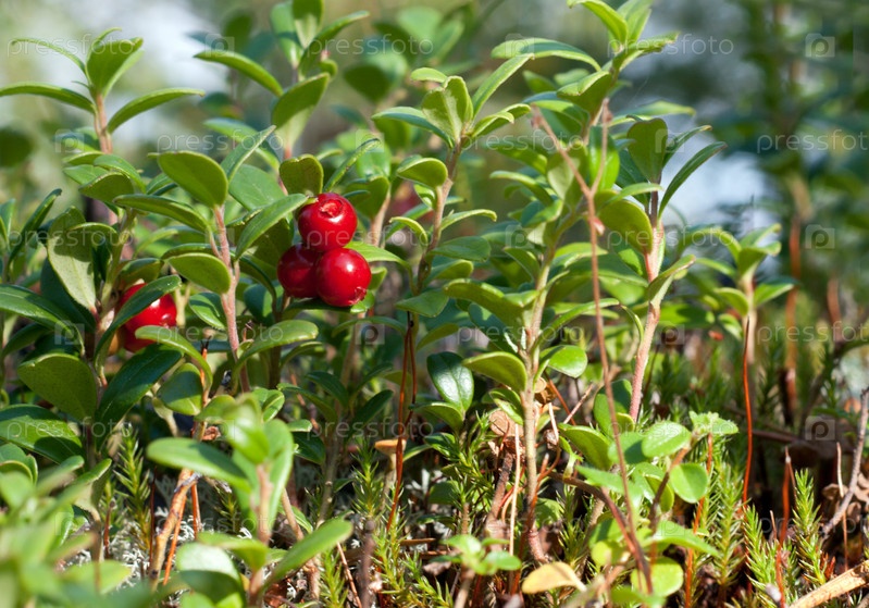Лесная брусника крупным планом