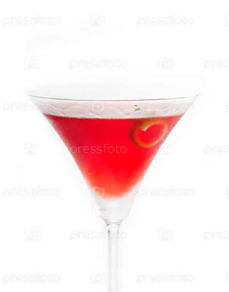 Коктейль космополитен в бокале для мартини с кожурой лайма, изолированный на белом фоне