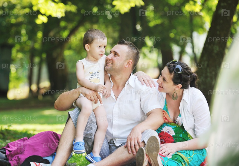 Молодая семья в парке отдыха