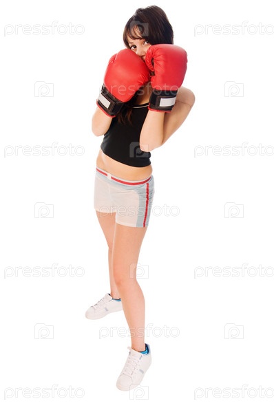 Девушка в боксерских перчатках
