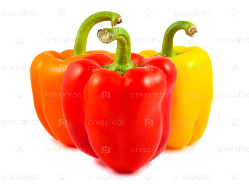 Оранжевый, красный и желтый перец, изолированы на белом фоне