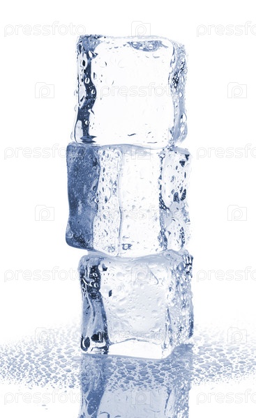 Три кубика льда, изолированы на белом фоне