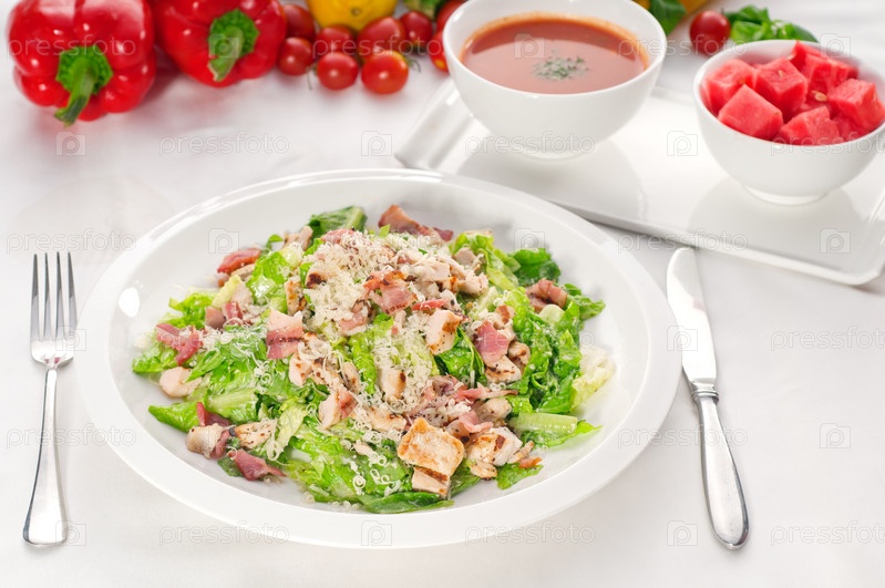 Свежий классический "Цезарь" и суп "гаспачо"