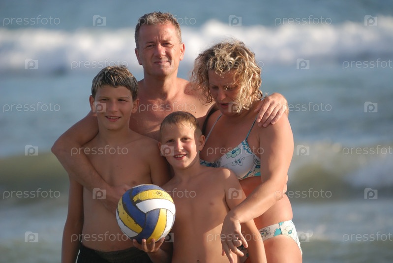 Семейный портрет на пляже в летние каникулы