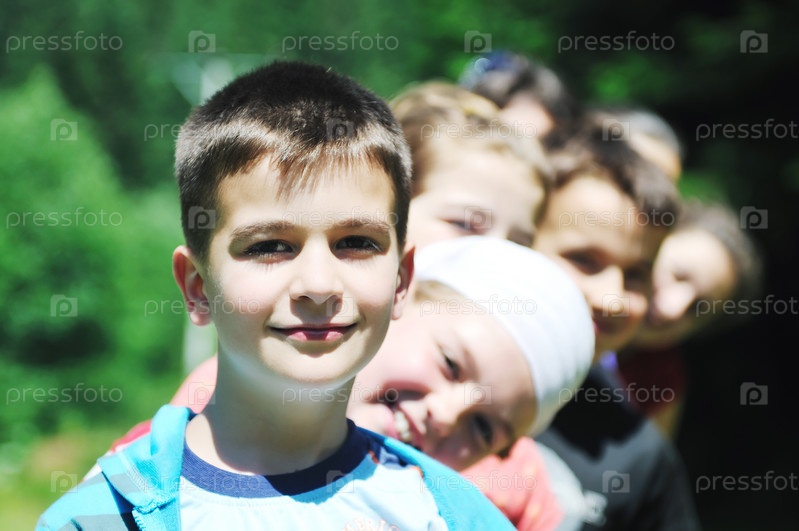 Группа счастливых детей на улице в солнечный день