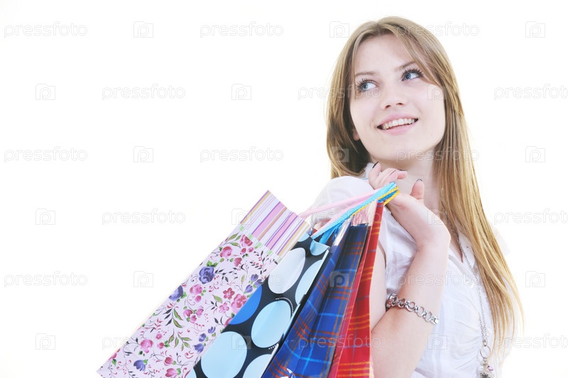 Портрет молодой девушки с пакетами в руках
