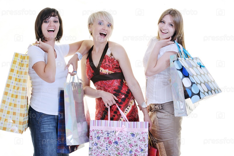 Портрет молодых девушек с пакетами в руках