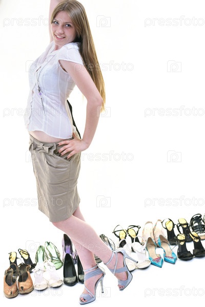 Портрет молодой девушки с обувью
