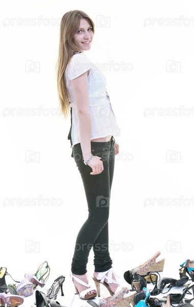 Портрет молодой девушки с обувью