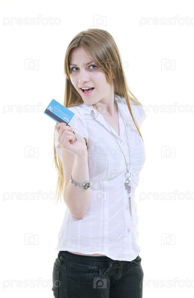 Портрет молодой девушки с кредиткой