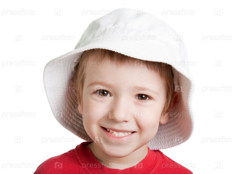 Портрет красивого маленького мальчика в летней пляжной панаме