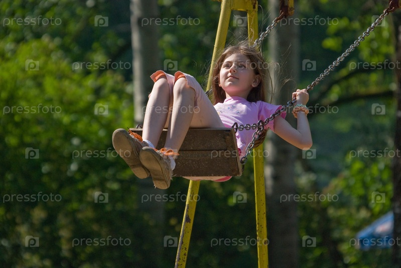 Девочка на качелях в парке