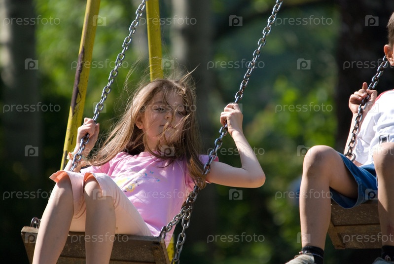 Девочка и мальчик на качелях в парке