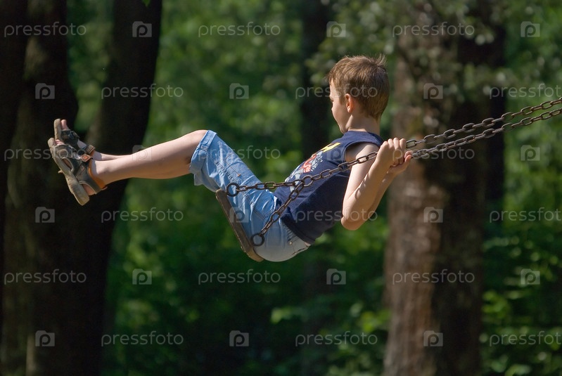 Мальчик на качелях в парке