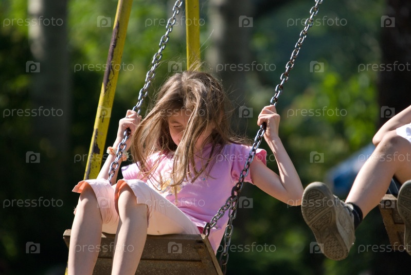 Девочка на качелях в парке