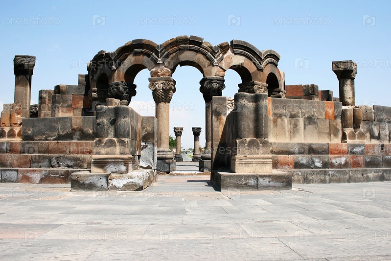 Руины собора Звартноц 7 века в Армении, памятник Всемирного наследия ЮНЕСКО