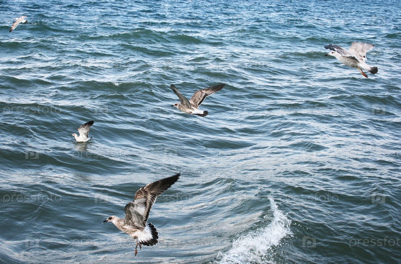 Чайки над озером Севан в Армении