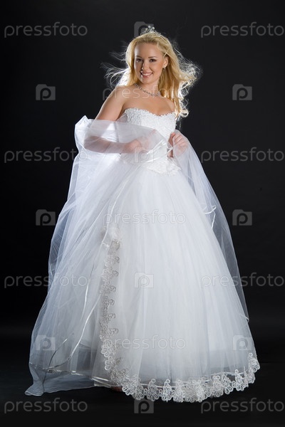 Блондинка в свадебном платье на черном фоне