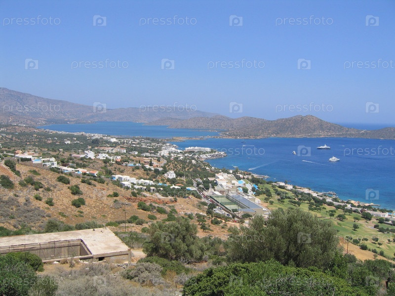 Вид на курортный остров, море и горы