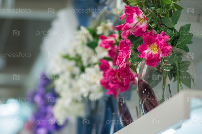 Красивые цветы на полке магазина