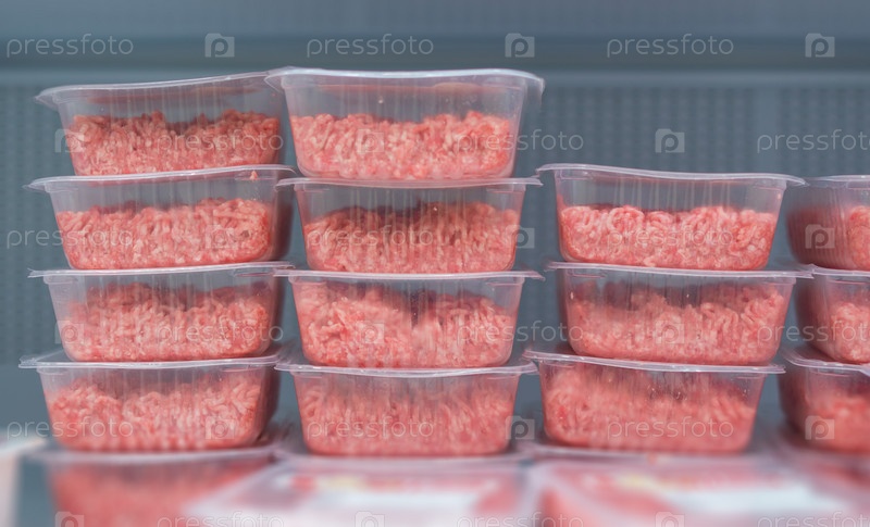Фарш в коробках в супермаркете
