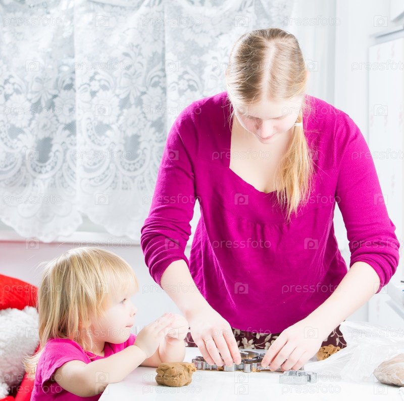 Женщина с дочкой стряпает на кухне
