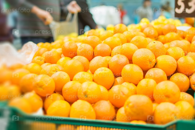 Мандарины в коробках в супермаркете