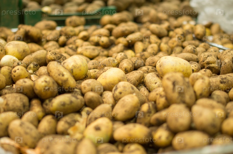 Молодой картофель в коробках в супермаркете