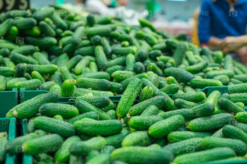 Огурцы в ящиках в супермаркете