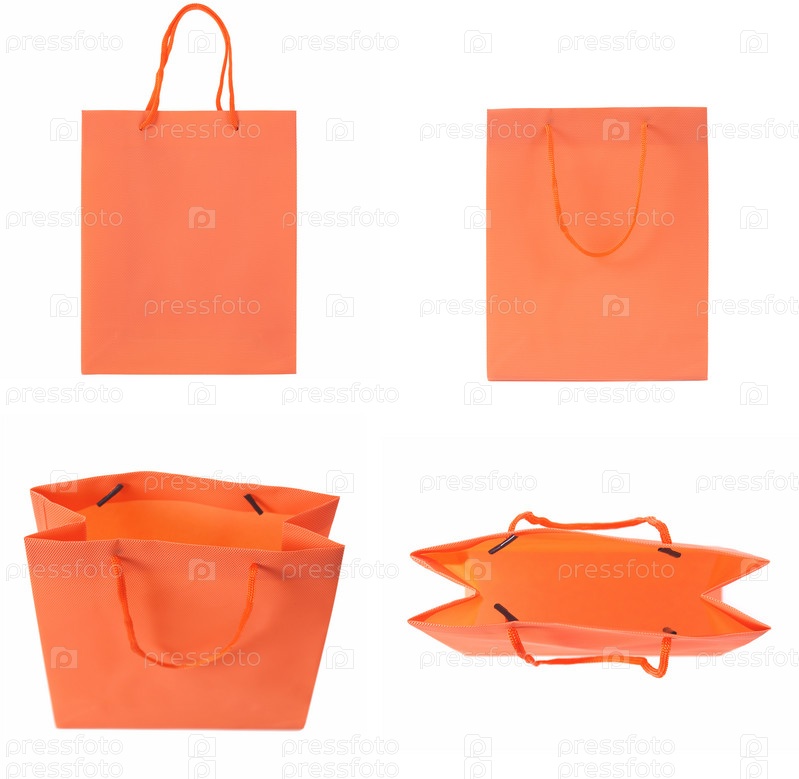 Набор оранжевых пакетов, изолировано на белом фоне