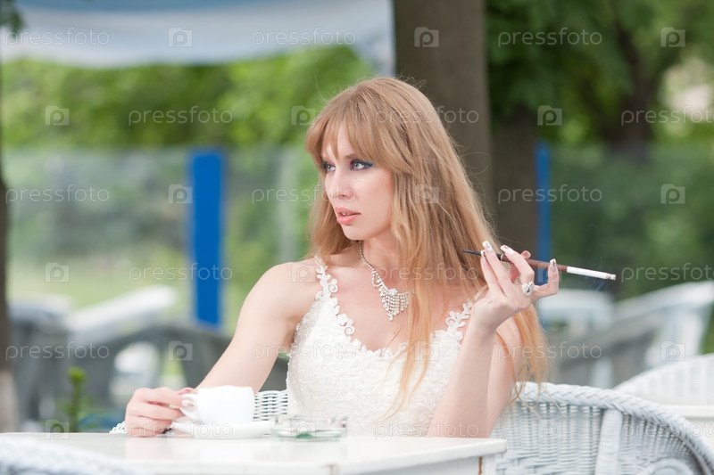 Женщина с чашкой кофе и сигаретой