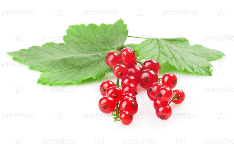 Красная смородина с листьями на белом фоне
