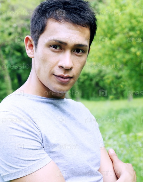 Портрет улыбающегося молодого человека на природе